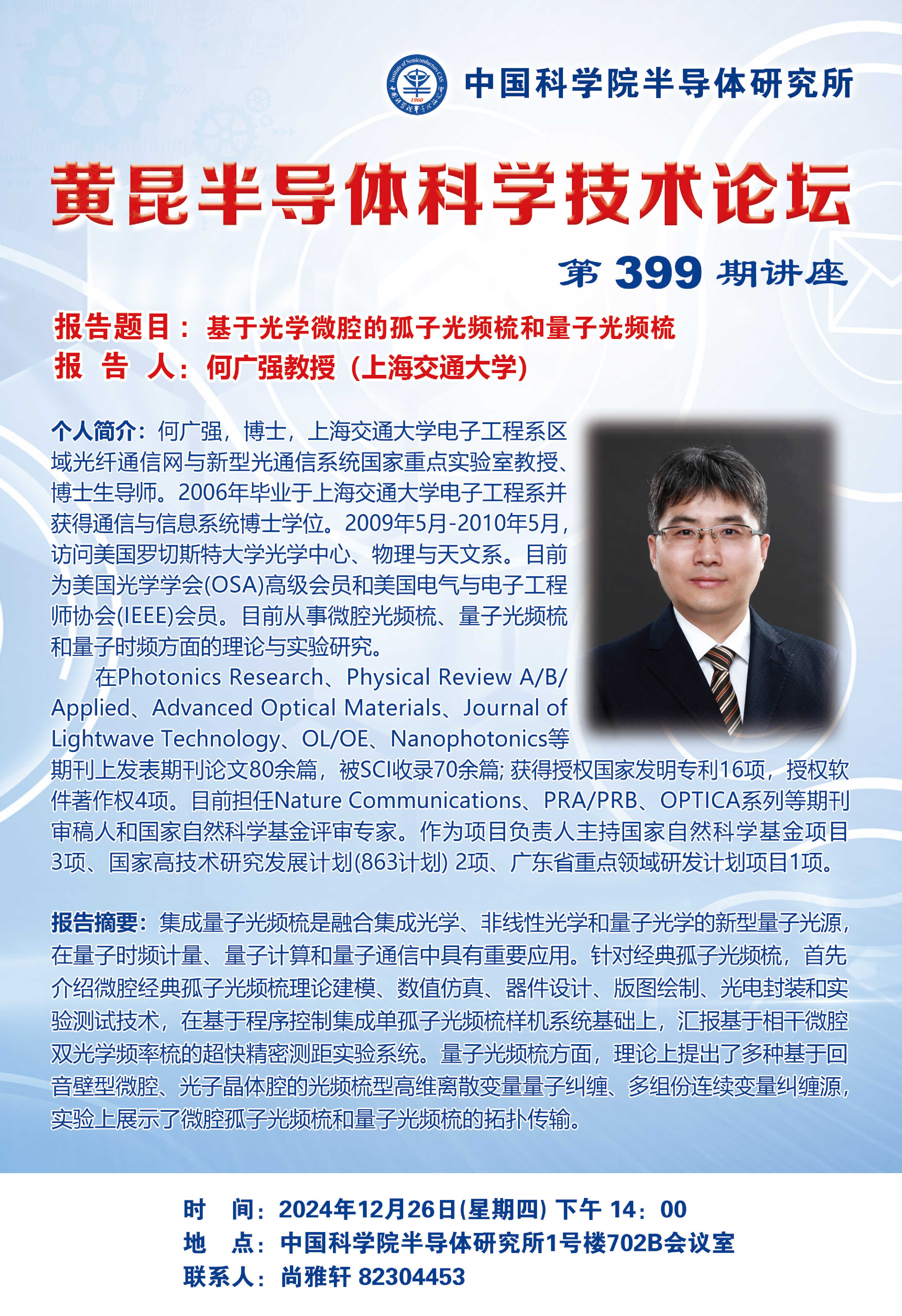 报告地点在中国科学院半导体研究所1号楼702B会议室