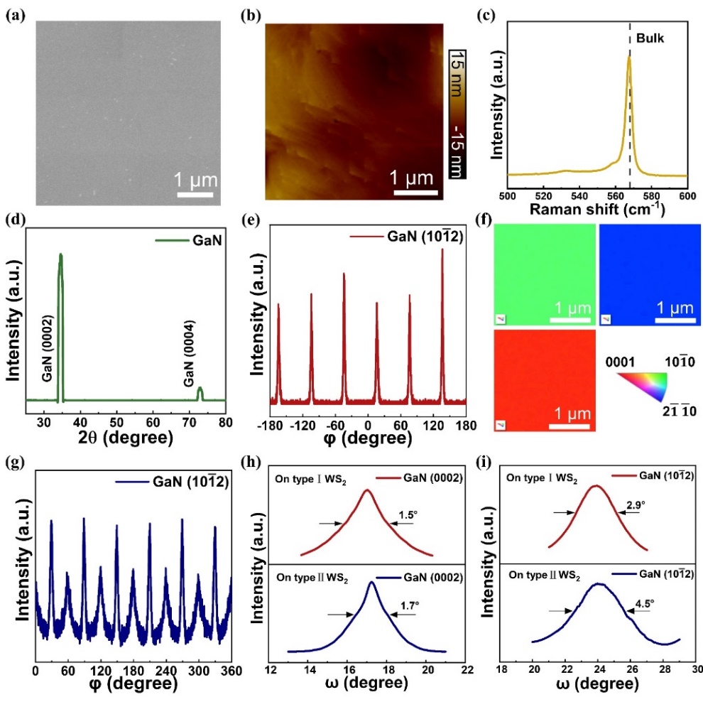 图3 WS2-石英玻璃晶圆上的单晶氮化物范德华外延层
