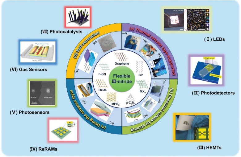 [2] Song, W., Chen, Q., Yang, K., Liang, M., Yi, X., Wang, J., Li, J., Liu, Z., Recent Advances in Mechanically Transferable III-Nitride Based on 2D Buffer Strategy. Adv. Funct. Mater. 2023, 33, 2209880. https://doi.org/10.1002/adfm.202209880