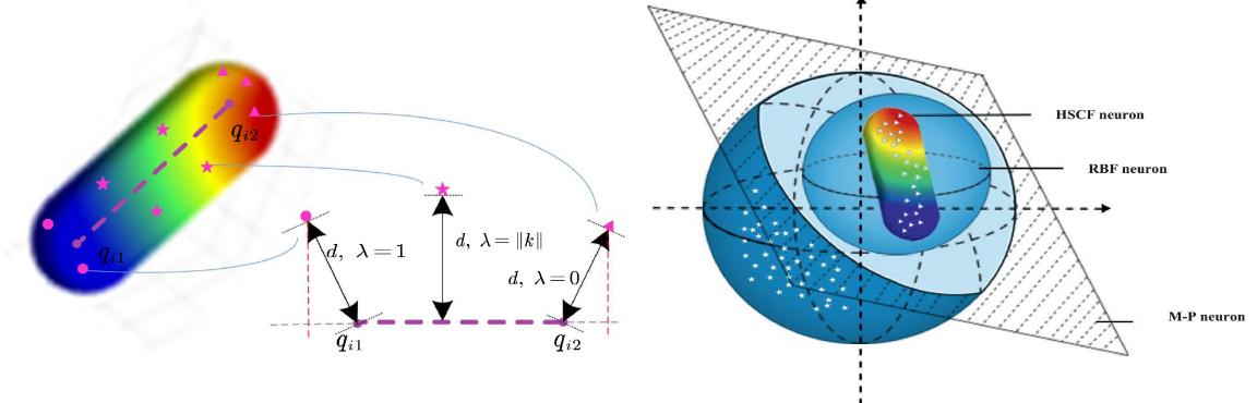 图1.超香肠覆盖式神经元模型及分类策略可视化表示