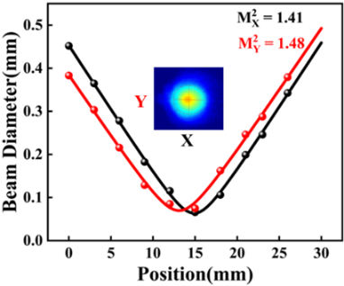 (右)单点阵激光源光束质量测试结果。