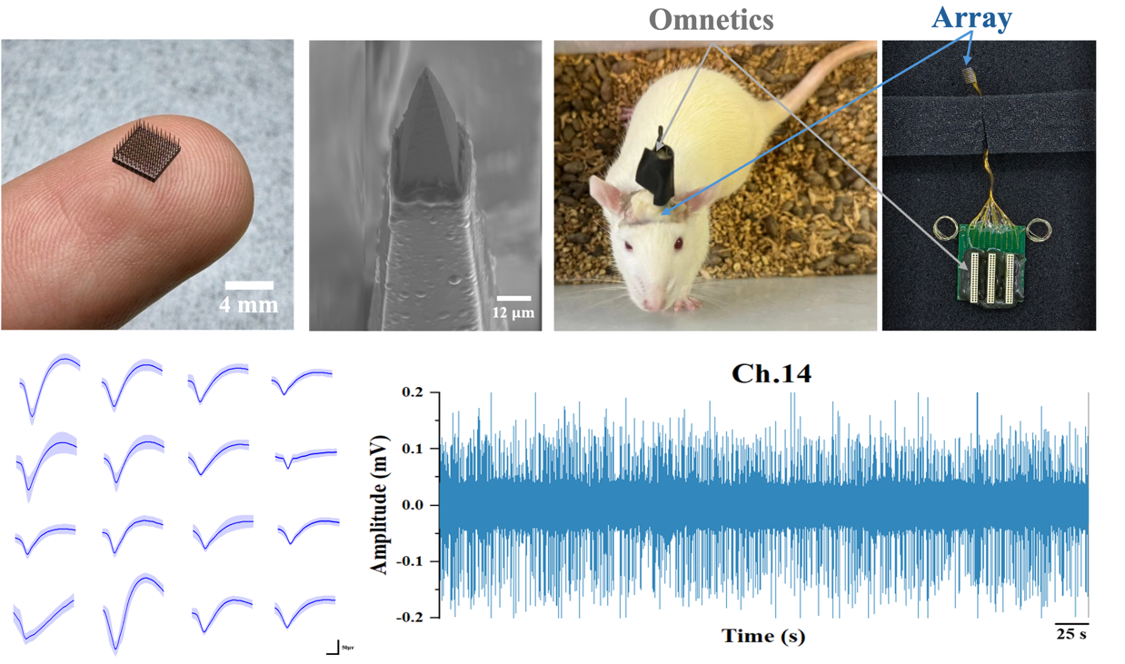 电活动是以大脑为代表的神经信息系统产生、传输和处理信息的基础。检测活体生物神经电活动是脑科学研究、神经及精神类疾病临床研究和脑机接口应用研究的关键核心技术。植入式神经微电极作为脑机接口的核心关键器件,可植入活体动物大脑,在几乎不影响大脑正?;疃奶跫录锹悸阅诓康ジ錾窬牡缧藕?。要适应脑组织、减小血脑屏障和免疫反应干扰,实现对微弱(μV量级)神经电信号的高通量、长时程记录,传感器在环境耐受性、单位体积所含通道数、生物相容性和信噪比等特性方面均需满足极高的要求。