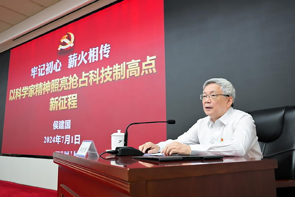 7月1日,在中国共产党成立103周年之际,中国科学院召开党课报告会。中国科学院院长、党组书记侯建国以《牢记初心?薪火相传?以科学家精神照亮抢占科技制高点新征程》为题作党课报告,学习贯彻习近平总书记在全国科技大会、国家科学技术奖励大会、两院院士大会上的重要讲话精神,结合当前正在开展的党纪学习教育,重温老一辈科学家的感人事迹,讲述新时代科学家的奋斗故事。中国科学院副院长、党组副书记吴朝晖主持报告会。