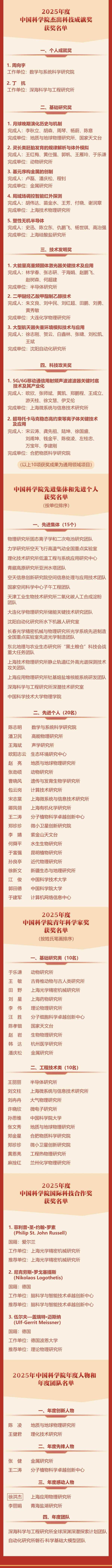 1月28日,中国科学院颁发2025年度中国科学院杰出科技成就奖、青年科学家奖、国际科技合作奖、年度人物和年度团队,并与人力资源和社会保障部共同表彰先进集体和先进个人。