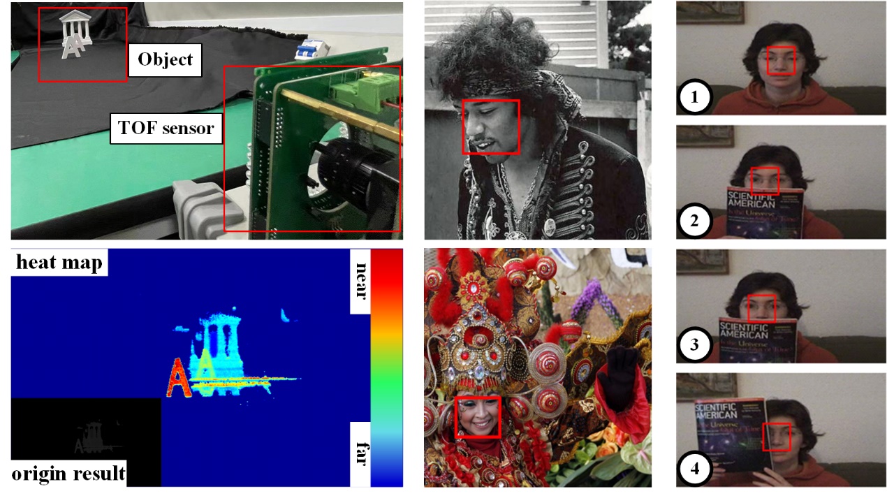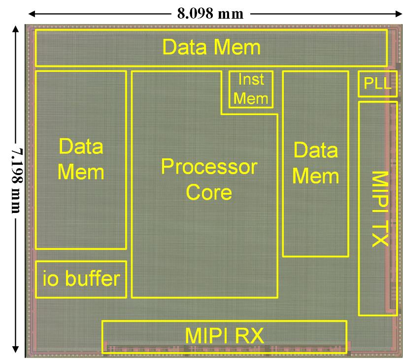 中国科学院半导体研究所刘力源研究员带领的团队在双模视觉信息智能计算芯片设计领域取得重要进展。团队创新性地设计了一款兼容处理2D/3D双模视觉信息的视觉处理器架构和用于人工智能算法的数据流。提出了一种可重构并行处理单元阵列架构,并行处理单元阵列支持向量化单指令多数据处理模式,可显著提升人工智能算法的数据复用率,减小了算法处理延时和访存功耗;设计了一种用于2D/3D图像处理算法的指令集架构以及对应的算法部署方法,能够灵活映射从数据预处理到智能处理阶段的图像处理算法,消除冗余的专用图像处理电路,提升了芯片单位面积算力。测试结果表明,芯片可实现3D深度重建、2D人脸目标检测和2D目标追踪算法。图1和图2分别为芯片照片和片上算法处理结果。该工作为设备功耗与体积均受限的边缘场景多模态视觉信息智能处理提供了一个高效且灵活的智能化计算平台。