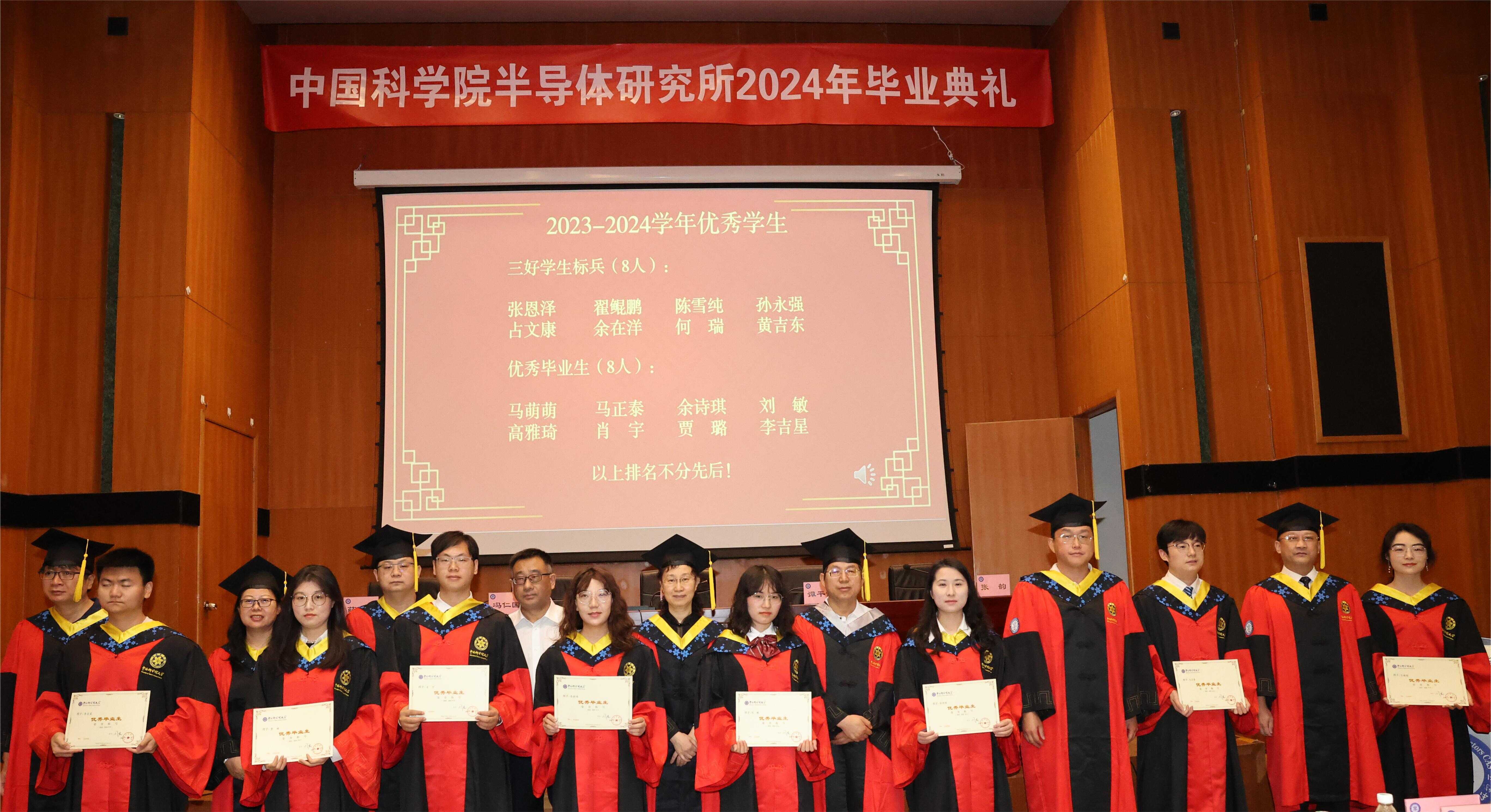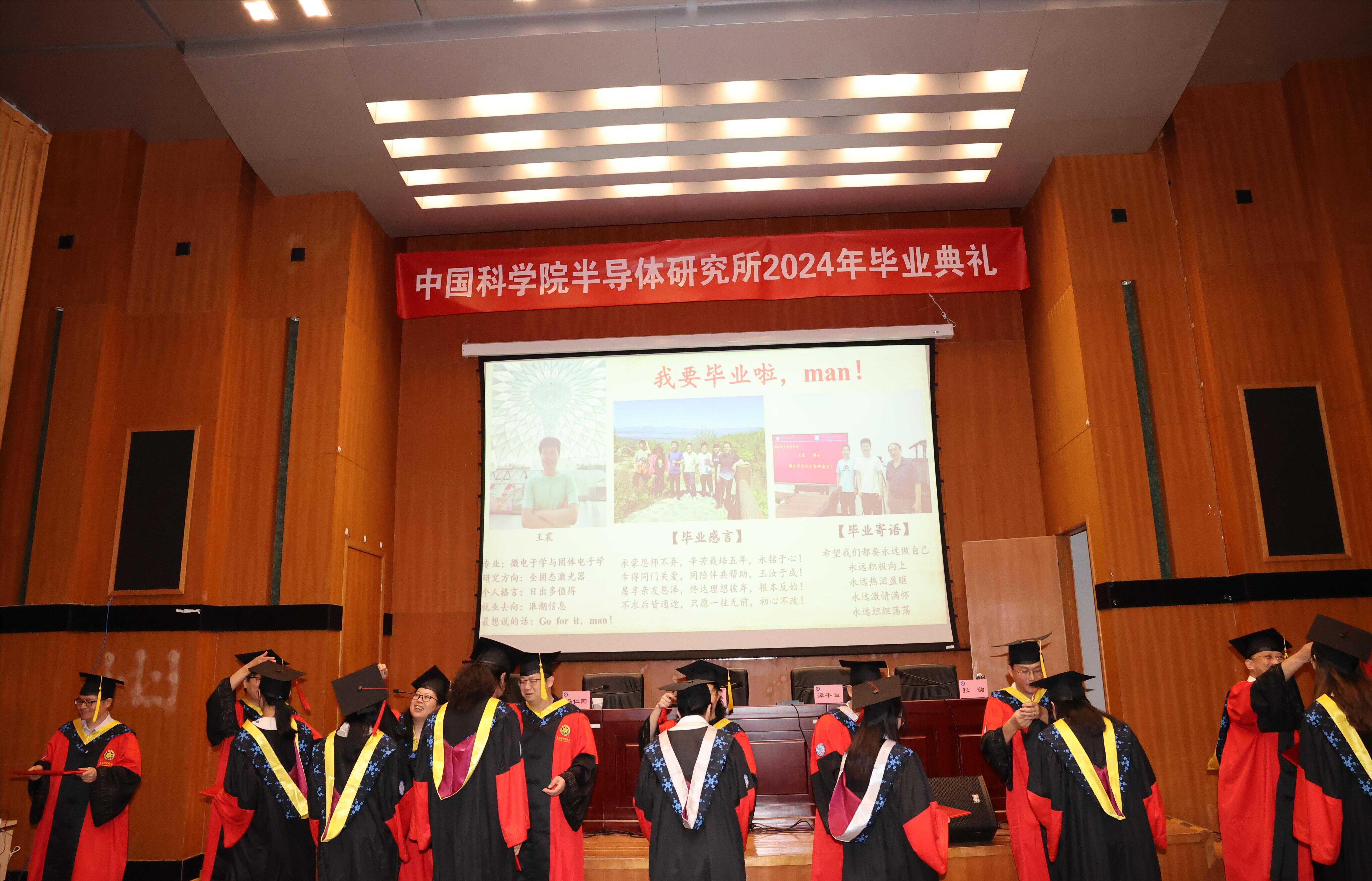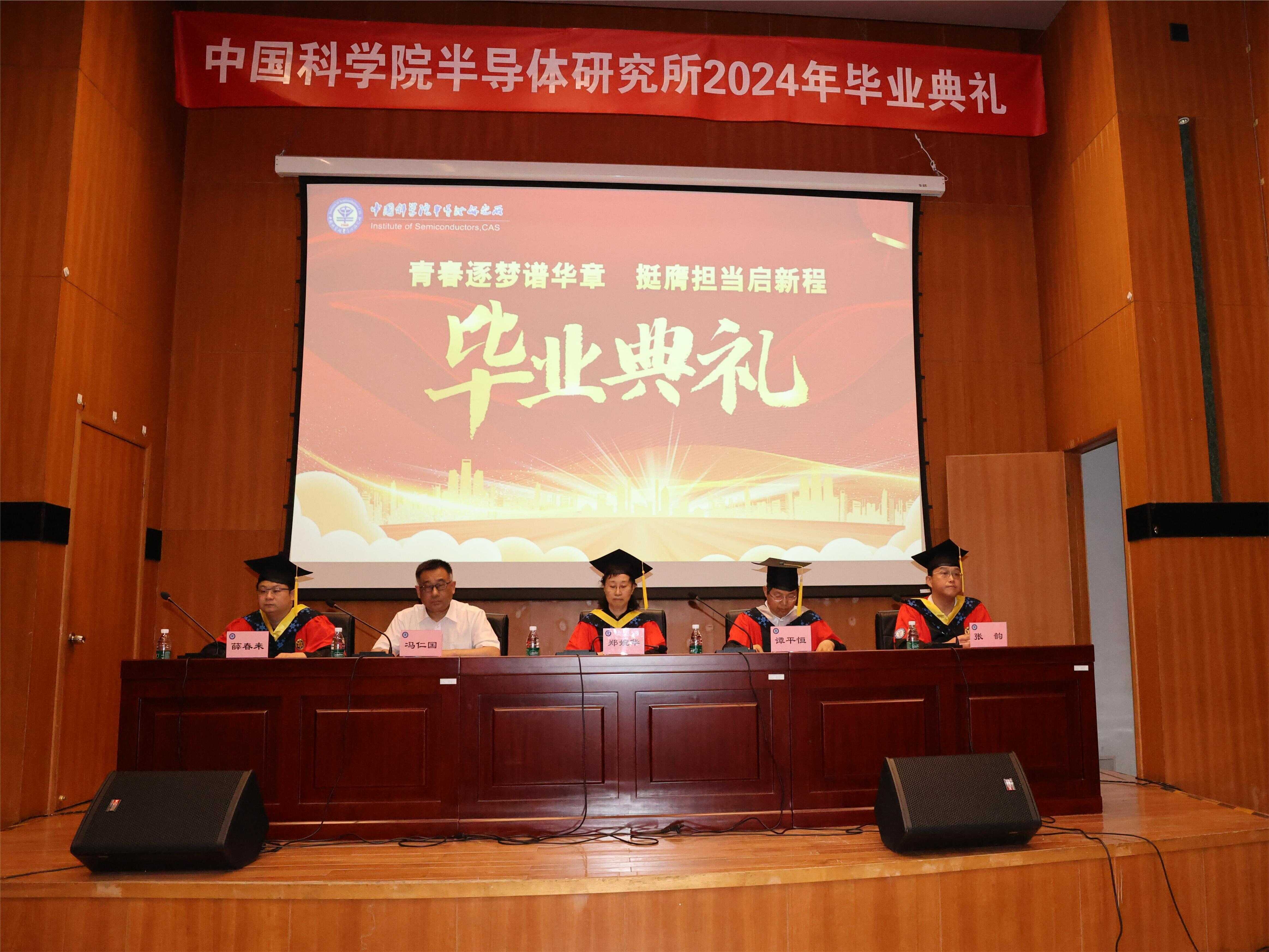 2024年6月20日,半导体所2024届研究生毕业典礼在学术会议中心隆重举行。郑婉华院士,所长谭平恒,党委书记、副所长冯仁国,副所长张韵,副所长薛春来,光电系统实验室主任李芳,固态光电信息技术实验室主任李文昌、副主任王智杰及导师代表魏钟鸣研究员出席了典礼仪式。百余位毕业生参加了毕业典礼,典礼由人事教育处处长徐艳坤主持。