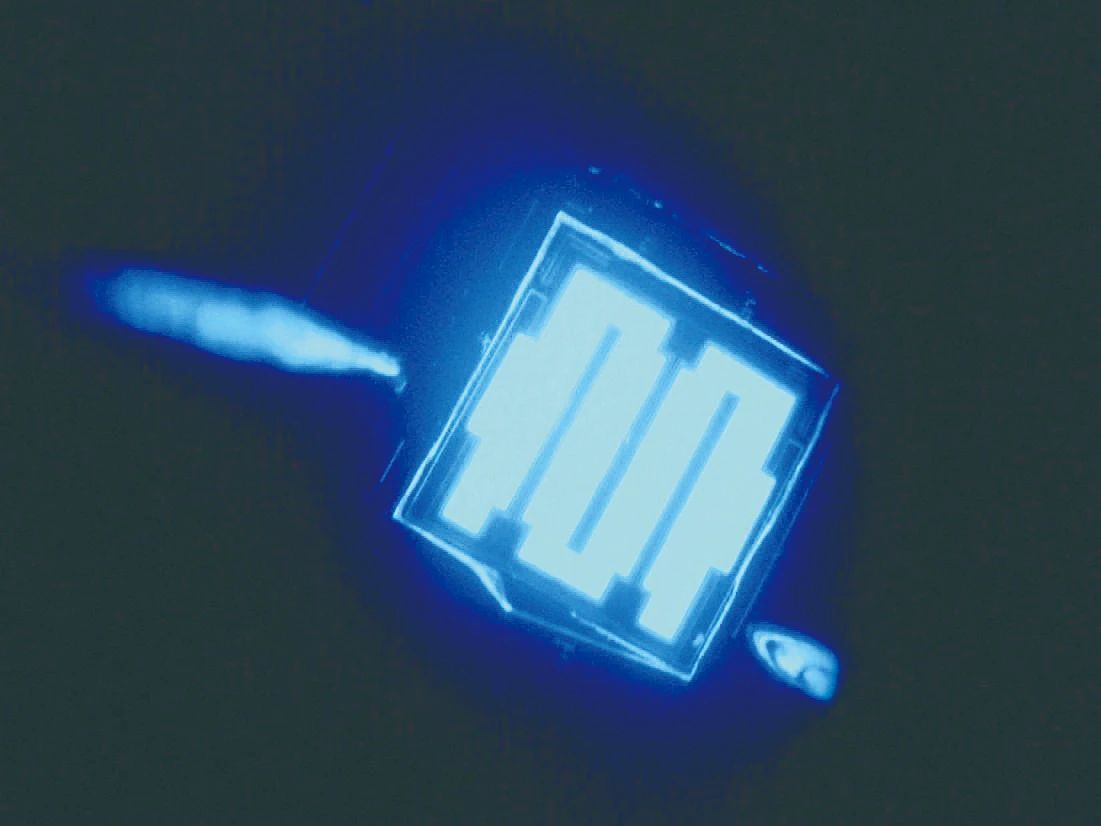 首批研制成功的大功率倒装结构LED芯片。半导体所供图