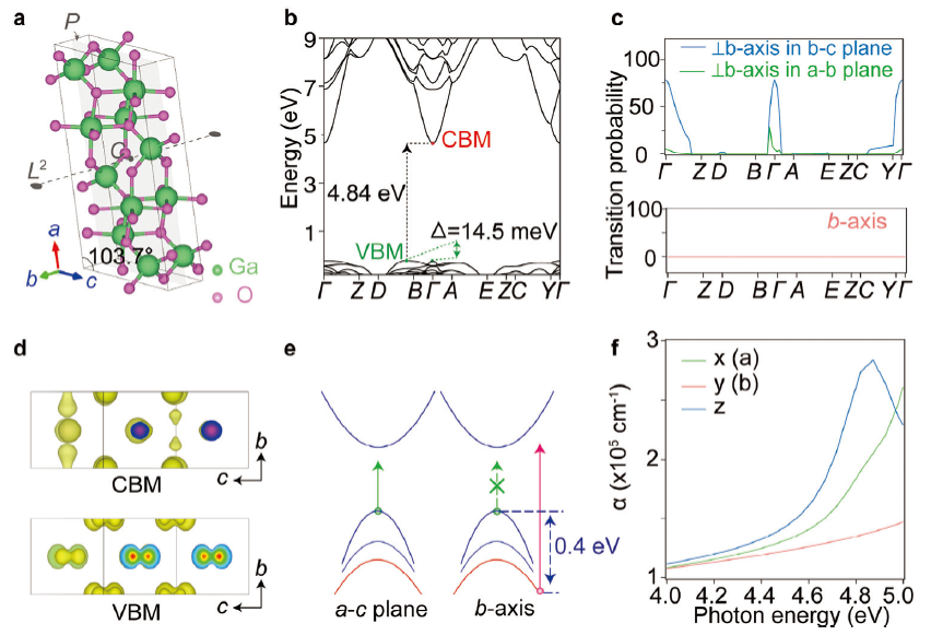 图1??β-Ga2O3?各向异性的晶体堆积和能带结构