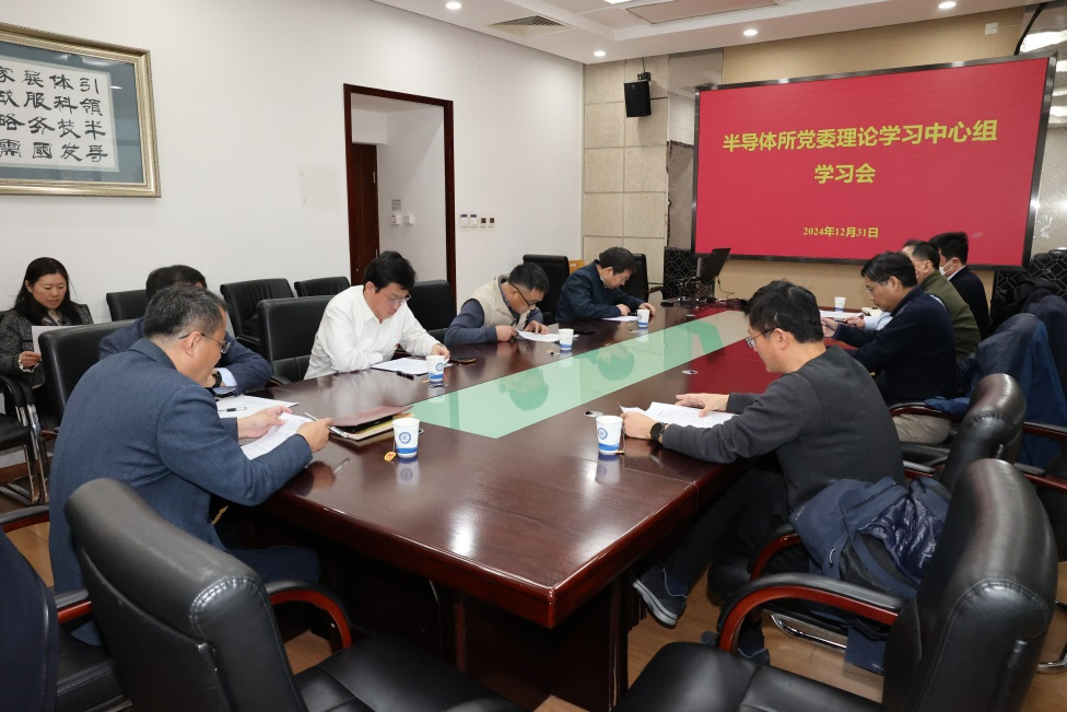 2024年12月31日上午,半导体所召开党委理论学习中心组学习会。会议由党委书记、副所长冯仁国主持,所长谭平恒,副所长张韵,副所长薛春来,纪委书记翟金良以及党委委员李明、骆军委、王军喜、张兴旺参加会议。